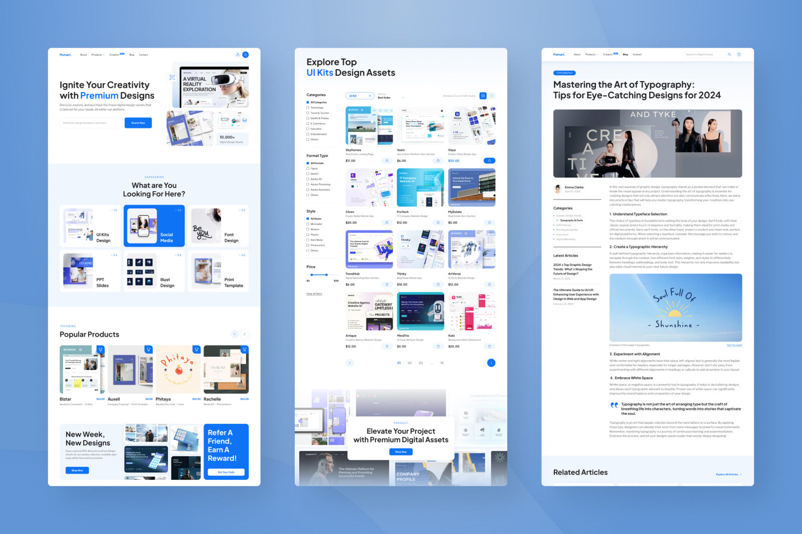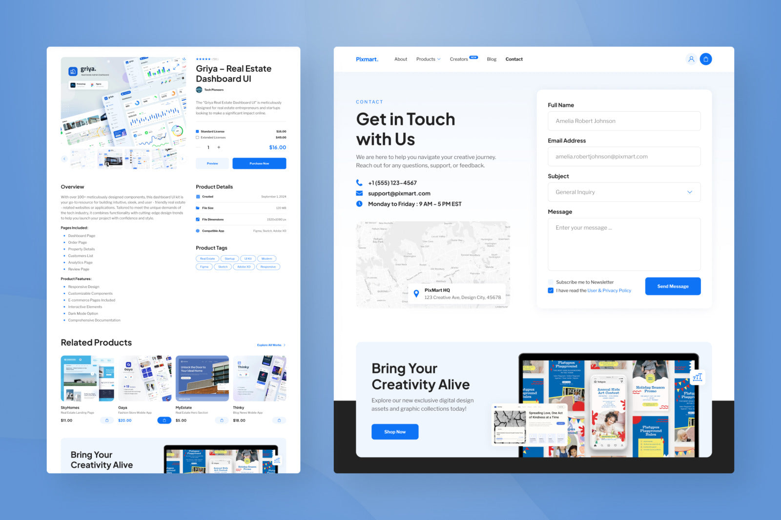 Transform your website for a better business prospect using PixMart, a refreshing blue digital products e-commerce website UI Figma template. Users can easily explore every part of the sections and pages in this website template since it has a well-organized layout. Furthermore, it also has a simple user interface that provides comfortability. You can use this template to transform your digital products e-commerce for better performance.
